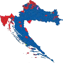 Parliamentary elections were held in Croatia on 5 July 2020.[1] They were the tenth parliamentary elections since the first multi-party elections in 1990 and elected the 151 members of the Croatian Parliament. 140 Members of Parliament were elected from geographical electoral districts in Croatia, three MPs were chosen by the Croatian diaspora and eight MPs came from the ranks of citizens registered as belonging to any of the 22 constitutionally recognized national minorities.[lower-alpha 2]