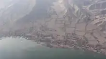 As a result of these constant earthquakes, numerous fissures or cracks appeared across different barangays in the Batangas towns of Agoncillo, Lemery, San Nicolas, and Talisay, the towns within the 14-kilometer radius danger zone of Taal. A fissure also transected the road connecting Agoncillo to Laurel.[54] On January 15, PHIVOLCS reported that the water in Main Crater Lake on Volcano Island had drained; the lake measured 1.9 kilometers wide and 4 metres (13 ft) above sea level. Portions of the Pansipit River, had also drained as a result of "the ground deformation caused by an upward movement of the magma"; it was the same process that caused the series of earthquakes. PHIVOLCS have also hinted at the possible existence of underwater fissures in Taal Lake into which the water may have drained.[55]