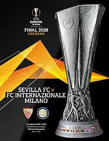 The 2020 UEFA Europa League Final was the final match of the 2019–20 UEFA Europa League, the 49th season of Europe's secondary club football tournament organised by UEFA, and the 11th season since it was renamed from the UEFA Cup to the UEFA Europa League. It was played at the RheinEnergieStadion in Cologne, Germany on 21 August 2020, between Spanish side Sevilla and Italian side Inter Milan. The match was held behind closed doors due to the COVID-19 pandemic in Europe.[5]