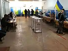 The nationwide turnout of the elections was 36.88% nationwide.[31] The highest participation was in Western Ukraine (ranging from 40% to 45%), lowest was in Donetsk Oblast, Mykolaiv Oblast and Kharkiv Oblast (in all three slightly above 30%).[31] An exit-poll of sociological group "Rating" concluded that more than half of the voters who came to the polling station were over 50 years old.[32]