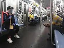 Social distancing on the New York City Subway, May 2020