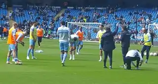 ![]() Manchester City warm up for their Premier League match against Watford on 23 April 2022 | ||||
