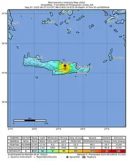 - "ITSAK ShakeMap: East Crete Isl. - S. Greece". Institute of Engineering Seismology and Earthquake Engineering. 27 September 2021. Retrieved 27 September 2021.