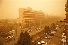 The sandstorm was the biggest to hit China in a decade, causing pollution levels in some districts to rise to 160 times the recommended limit.[6][4] It affected 12 provinces in China, including the Chinese capital Beijing which the storm hit on March 15.[4]