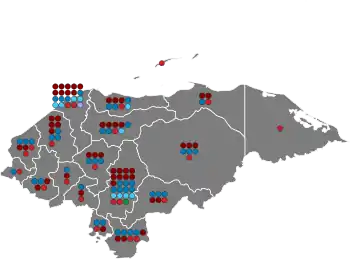 The President of Honduras is elected by plurality, with the candidate receiving the most votes in a single round of voting declared the winner.[3] The 128 members of the National Congress are elected by open list proportional representation from 18 multi-member constituencies based on the departments ranging in size from one to 23 seats.[4] Seats are allocated using the Hare quota.[4]
