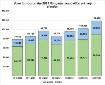 - "Szombaton is rekordmennyiségű ember ment el szavazni az előválasztáson". telex (in Hungarian). 2021-09-26. Retrieved 2021-09-26.