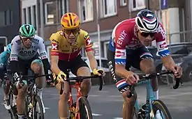 The trio of World Road Race Champion Julian Alaphilippe (Deceuninck–Quick-Step), defending champion Wout van Aert (Team Jumbo–Visma), and Mathieu van der Poel (Alpecin–Fenix) came into the race as the main favourites, especially given their runs of excellent form in the build-up to the event.[6][7][13] All three had won stages at Tirreno–Adriatico, which had finished just four days prior, with Alaphilippe winning one stage and the other two winning two each. Additionally, van der Poel had won the Strade Bianche just ahead of Alaphilippe, with van Aert finishing fourth. Especially for the former two riders, their history of high placings in this race further contributed to their statuses as favourites. In 2019, Alaphilippe improved from a close third-place finish in 2017 to win, while van Aert finished sixth on his first attempt.[14] In the 2020 edition, van Aert had outsprinted Alaphilippe for the win, while debutant van der Poel finished 13th.[15]