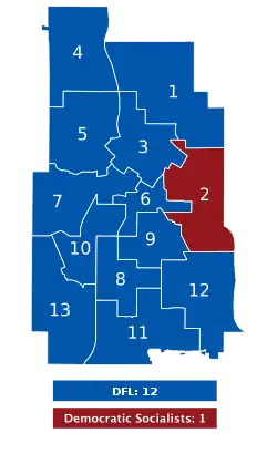 All 13 seats on the Minneapolis City Council 7 seats needed for a majority | ||||||||||||||||||||||||||||