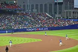 Due to the COVID-19 pandemic and associated travel restrictions, the team played 38 games at their spring training home of TD Ballpark in Dunedin, Florida,[1] instead of returning to their normal home of Rogers Centre in Toronto, with the hope of moving back once Canada–U.S. travel restrictions are eased. The team then began playing their home schedule at Sahlen Field in Buffalo, New York (their home in 2020) in June.[2][3] On July 30, the Blue Jays returned to Rogers Centre for the first time since the 2019 season.[4]