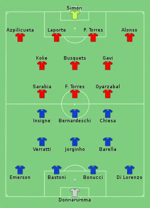 - "Tactical Line-ups – Semi-finals – Italy v Spain" (PDF). UEFA.com. Union of European Football Associations. 6 October 2021. Retrieved 6 October 2021.
