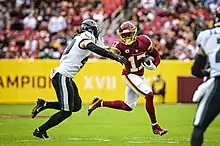 For the first time since 2019 and fourth time in five seasons, Washington was swept by the Eagles. Despite leading through three quarters, Washington could not withstand a second-half rally by Philadelphia, and a late rally of their own was snuffed out by a game ending interception. Washington was eliminated from playoff contention with the 20–16 loss.