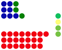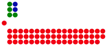 The 2017 state election saw Labor win one of the most comprehensive victories on record at the state or territory level in Australia. Labor won 41 of the 59 seats in the Legislative Assembly—a 23-seat majority—both WA Labor's strongest result ever, and the largest government seat tally and largest government majority in Western Australian parliamentary history. Additionally, Labor exceeded all published opinion polling, winning 55.5 percent of the two-party-preferred vote from a state record landslide 12.8 percent two-party swing.[11][12] The Liberals were hit by a 15.8% swing against them on the primary vote and lost 18 seats to Labor, finishing with just 13 seats, the lowest share of seats the party has won in any election. The Nationals won the remaining five seats.[13] Labor also became the largest party in the Legislative Council with 14 of the 36 seats, ensuring it required at least five additional votes from non-government members to pass legislation.[13][14]