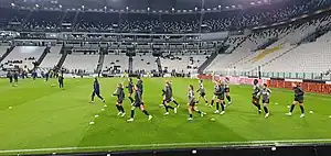 ![]() Arsenal players warming up in Turin for the Champions League match against Juventus on 24 November 2022 | ||||