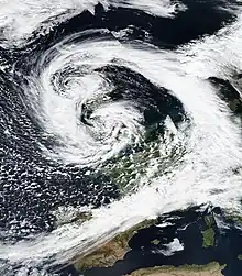 The Meteorology Department of the Free University of Berlin (FUB) names all high and low pressure systems that affect Europe, though they do not assign names to any actual storms.[9] A windstorm that is associated with one of these pressure systems will at times be recognized by the name assigned to the associated pressure system by the FUB. Named windstorms that have been recognized by a European meteorological agency are described in this article.