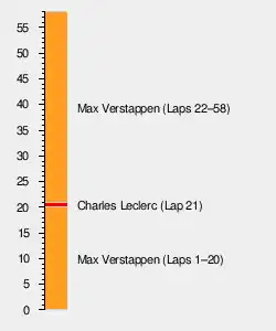 Verstappen aided Pérez's attempt in the final segment by giving him a slipstream throughout the lap, as Red Bull Racing sought to provide Pérez with every opportunity to finish ahead of Charles Leclerc for second in the championship. It was Verstappen who took pole position, his seventh of the season, with Pérez qualifying second to give Red Bull Racing their first front-row lockout since the 2018 Mexican Grand Prix.[15] The qualifying results also meant that seven-time world champion Lewis Hamilton failed to claim a pole position during a season for the first time in his Formula One career since it began in 2007, a record streak.[16]
