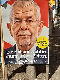 Presidential elections were held in Austria on 9 October 2022.[1] Incumbent Alexander Van der Bellen from the Greens was eligible for one more term and ran for re-election.[2] About 6.36 million voting-age citizens were eligible to vote.
