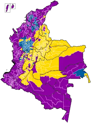 Petro won the runoff with 50.42% of the vote to Hernández's 47.35%.[12] Petro dominated in regions on Colombia's Caribbean and Pacific coasts,[6][13] and received over 81% of the vote in the coastal department of Chocó.[14] Due to an increased turnout among his supporters, Petro received nearly 2.7 million more votes in the second round than the first.[13][15] The result was noted for a continuing trend of left-wing victories in Latin America,[6] which has been dubbed as a "new pink tide".[9][16][17]