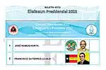 Presidential elections were held in East Timor on 19 March 2022.[1] Incumbent Francisco Guterres sought election to a second term.[2] As none of the presidential nominees received at least 50% of the cast votes, a runoff was held on 19 April 2022, between the top two candidates, José Ramos-Horta and Guterres.[3] Ramos-Horta won the runoff with 62.1% of the total votes cast.[4]