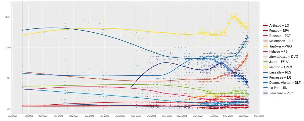- "POLITICO Poll of Polls — French polls, trends and election news for France". POLITICO. Archived from the original on 1 February 2022. Retrieved 1 February 2022.