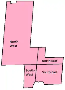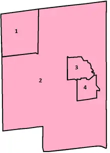 Eight Local Councillors are elected in 1 of 4 wards (2 from each ward).