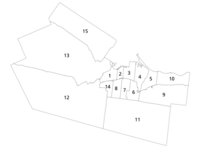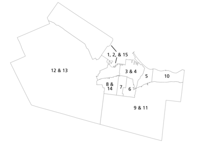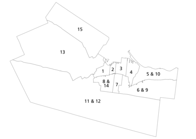 ![]() Municipal wards of the City of Hamilton for the 2022 election | |||||||||||||||||