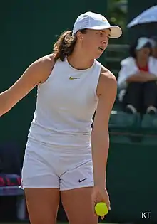 At Wimbledon, Świątek won her first and second round matches before losing to Alizé Cornet in straight sets in round three. This ended her 37 match win streak, the longest such streak in the 21st century.[39][40]