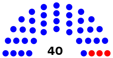 | Party | Votes | Percentage | Seats | +/– | |||||