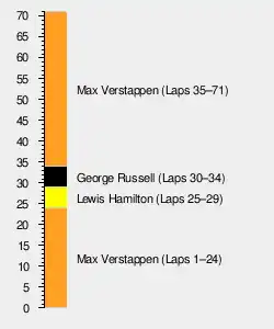 - ^2 – Daniel Ricciardo received a ten-second time penalty for causing a collision with Yuki Tsunoda. His final position was not affected by the penalty.[15]
