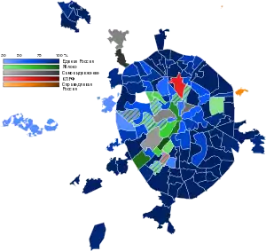 In 2017, in multiple districts in the center of Moscow, as well as some on the periphery of the city, the ruling party United Russia suffered defeats to opposition candidates, who received a combined total of nearly 20% of the seats. The opposition formed a coalition called United Democrats to get candidates elected to municipal councils of deputies.