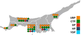The National Unity Party won 24 seats, gaining three compared to the previous elections in 2018. The main opposition party, the Republican Turkish Party won 18 seats, gaining six. Three other parties won seats; the Democratic Party and the People's Party both won three seats, while the Rebirth Party won two. The Communal Democracy Party lost all the seats it held.[3]