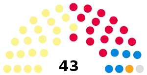 | Total | 43 | Electorate: 141,764 | Turnout: 62,973(44.4%) | Total valid: 61,418 | 100.00 | - | |||