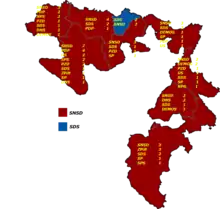 | Serb Democratic Party | 95,648 | 14.95 | 13 | 0 | 13 | +3 | ||