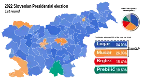In the first round Anže Logar received 34% of the voter share against 27% for Nataša Pirc Musar.[11] Milan Brglez was third with around 15%.[11] For the second round Golob then turned his support to Pirc Musar.[11]