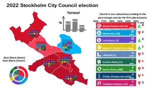 The 2022 Stockholm municipal election was held on 11 September 2022, concurrently with the 2022 Swedish general election. The election determined how many seats each party would be allocated on the 101-member Stockholm city council (Stockholms kommunfullmäktige) through a system of proportional representation.