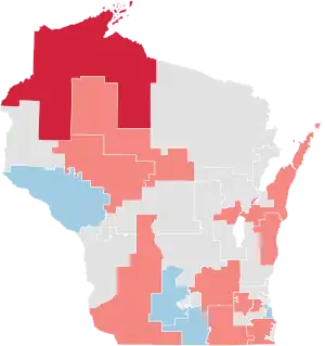 Republicans flipped one Democratic-held Senate seat and achieved a two-thirds supermajority, entering the 106th Wisconsin Legislature with 22 of 33 State Senate seats.