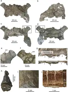 - Silva, G. T. G.; Nascimento, D. L.; Batezelli, A.; Ladeira, F. S. B.; Silva, M. L. (2022). "Cretaceous (Maastrichtian) chelonian burrows preserved in floodplain deposits in the Bauru Basin of Brazil: Evidence for the fossorial origin of turtle shells". Palaeogeography, Palaeoclimatology, Palaeoecology. 596: Article 110994. Bibcode:2022PPP...596k0994S. doi:10.1016/j.palaeo.2022.110994. S2CID 248162195.
