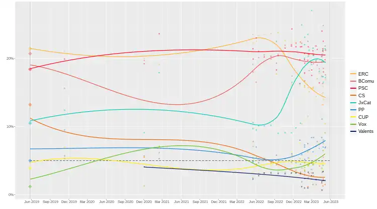 - "ERC ganaría las elecciones en Barcelona con PSC y BComú empatados". Metrópoli (in Spanish). 22 June 2022.