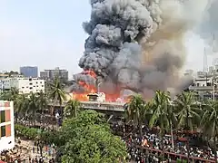 Despite efforts, nearly 6,000 stores were destroyed, and additional structures were damaged, resulting in a loss of at least 10 billion BDT.[2] The incident took place during the Islamic month of Ramadan, which was followed by the festival of Eid al-Fitr, leading to many traders purchasing new clothes using their previous year's earnings. Some vendors were able to move their items to safety during the emergency, but many were unable to salvage anything.