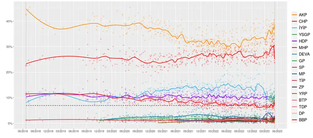 - "Partilerin Oy Oranı ve Tahmini Milletvekili Sayıları 14 Mayıs 2023" (in Turkish). Retrieved 14 March 2023.