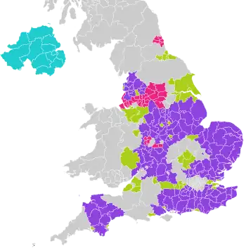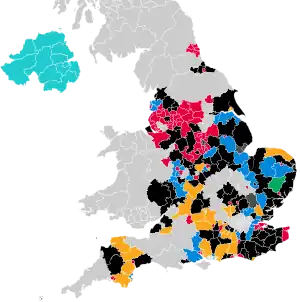 ![]() Map showing party control of councils following the elections.