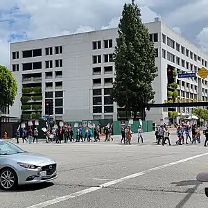 The WGA instructed members to begin picketing on May 2, 2023, at 1:00 p.m. PDT.[5] By May 3, 2023, picketing hours had extended to two four-hour shifts: an early shift from 9:00 a.m. to 1:00 p.m., and an afternoon shift from 1:00 to 5:00 p.m. The following studios, and events have been reported by Deadline Hollywood as places where the WGA have picketed, and plan on continuing. In Los Angeles: AMC Networks, Amazon/Culver Studios, MGM, CBS Radford, CBS Television City, Disney, 20th Century Studios, Lionsgate, Starz, Netflix, Paramount, MTV, Sony, Universal, Warner Bros. (including its own Burbank division) and in New York City: 30 Rock/NBCUniversal, Broadway Stages, HBO, NBC Upfronts, Netflix Manhattan HQ, Netflix Upfront, Peacock NewFront,[20] Silvercup East, Silvercup Studios, Steiner Studios, Warner Bros. Discovery, and Warner Bros. Discovery Upfront.[21]