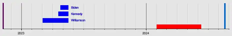 Incumbent President Joe Biden is running for re-election with Vice President Kamala Harris as his running mate.[2] Lawyer Robert F. Kennedy Jr. and author Marianne Williamson have also launched primary campaigns, but Biden retains a heavy polling lead.