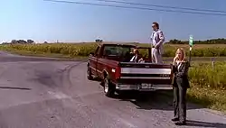The episode opens with President Josiah Bartlet giving a speech in Indiana during his re-election campaign, while Toby and Josh converse in a field with a farmer named Cathy (played by Amy Adams). They realize that the Presidential motorcade that was transporting them between campaign stops has gone without them, leaving them, along with Donna who was sent to fetch them, stranded. Much of the episode deals with the trio's attempts to get home; however, their journey is delayed by several mishaps (Cathy's truck runs out of biodiesel, they miss their plane due to confusion over Indiana's time zones, they board the wrong train, etc.)