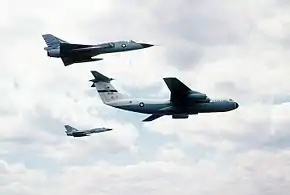 ![]() 437th Military Airlift Wing C-141 escorted by F-106s in 1980 | |