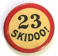 23 skidoo has been described as "perhaps the first truly national fad expression and one of the most popular fad expressions to appear in the U.S", to the extent that "Pennants and arm-bands at shore resorts, parks, and county fairs bore either [23] or the word 'Skiddoo'."[1]