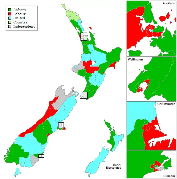 - The Reform and United parties could not agree on an official coalition candidate for the Timaru electorate, so neither Armstrong (Reform) nor Herbert Hall (United) were official candidates, and many sources show them as Independents