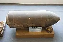 Due to a lack of alternatives, the Japanese reactivated the 28 cm howitzer for coastal defence in 1945, expecting the landing of the Allies. Thirteen guns were emplaced on Kyushu, six on Shikoku, 62 on Honshu and 10 on Hokkaido.[7] Also, two batteries of the 28 cm howitzers were used by 132nd Independent Mixed Brigade at Dongning, Heilongjiang, during the Soviet invasion of Manchuria in 1945.[8] Two batteries of 28 cm howitzers were emplaced with the Najin Fortress Garrison in Rason.