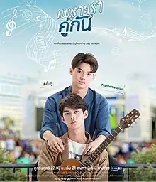 2gether: The Series (Thai: เพราะเราคู่กัน; RTGS: Phro Rao Khu Kan, lit. 'because we belong together') is a 2020 Thai romantic comedy series starring Vachirawit Chivaaree and Metawin Opas-iamkajorn. An adaptation of 2019 Thai novel by "JittiRain", the series follows the story of two college boys who go from being in a fake romantic relationship into a real couple.[2] Directed by Weerachit Thongjila and produced by GMMTV and Housestories 8, it was showcased at "2020 New & Next" event on 15 October 2019.[3][4] It was premiered on GMM 25, LINE TV and ICT.[5]