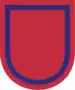 A red shield-shaped embroidered item with a semi-circular base 2+1⁄4 inches (5.72 cm) in height and 1 7/8 inches (4.76 cm) in width, edged with a 1/8 inch (.32 cm) blue inner border and a 1/8 inch (.32 cm) red outer border. The beret flash was approved on 27 April 2004. It was re-designated for the 2nd Battalion, 377th Field Artillery Regiment on 9 June 2005.[4]