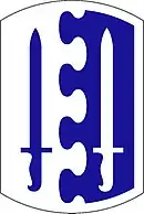 On 11 December 1980 the 2nd Brigade was authorized their own distinctive unit insignia (DUI). It is described as "a silver device 11⁄4 inches in height overall consisting of a blue arrowhead on which is superimposed a silver lion."